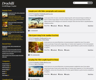 Drochilli is a minimalistic darken Blogger theme with two columns, left-sidebar, fixed width and widget-ready. Drochilli Blogger template has a top search box, related posts, post sharing buttons, Google fonts and SEO friendy codes.