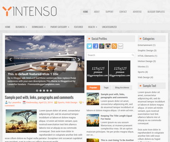 Intenso is a Responsive, 3 Columns Blogger Template with 4 Columns Footer Widgets Area. Intenso Blogger Template has a jQuery Content Slider, Header Menu and Dropdown Menu, Related Posts, Breadcrumb, Social Buttons, 2 Right Sidebars, Tabbed Widget and More Features.