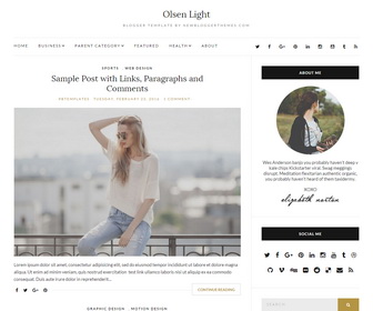 Olsen Light is an Elegant Looking, 2 Columns, Minimal Blogger Template for Fashion Blogs. Olsen Light Blogger Template has 2 Navigation Menus, Social and Share Buttons, Right Sidebar, Footer Widgets, Custom Widgets, Google Fonts, Related Posts and More Features.