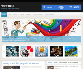 Secret Tribune is 3 Columns Magazine Blogger Template. Secret Tribune Blogger Template has a Featured Post Content Slider, Featured Post Carousel, 2 Top Navigation Menus, Social and Sahre Buttons and 2 Right Sidebars.