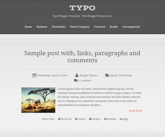 Typo is a 1 Column, Minimal and Responsive Blogger Template with 3 Columns Footer. Typo Blogger Template has Auto Post Summaries, Top Navigation Menu, Post Share Buttons, Related Posts, Google Fonts and More Features.